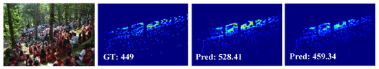 Deep-learning-based methods have been the main method for solving this problem and have achieved quite a few significant improvements. However, challenges remain to be settled. For one thing, the results of crowd counting are not sufficiently accurate in severe occlusions, scale variations, and diverse crowd distribution scenes, especially under the circumstances of crowds that visually share a high similarity with their surroundings, as illustrated in the first column of Figure 1.