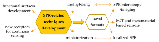 - miniaturization of detectors, development of portable SPR systems for the on-site detection and adaptation of commonly available instruments to the role of detectors (e.g., integration of SPR platforms with smartphones) [19];