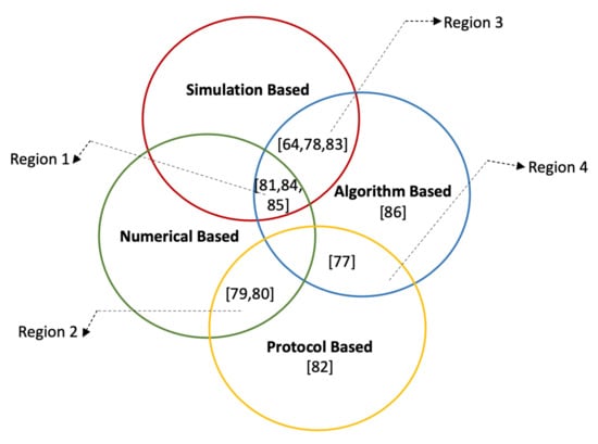 The intersections can be modeled as tiles, where the vehicles need to reserve the tiles for their decided routes for a certain time. Once the titles and time slots are approved, the vehicles can cross the intersections based on their reservation time. The authors of Reference [48] studied the cooperative resource reservation with a simple intersection layout and assumed that, once the tile is reserved, the vehicle has to maintain the same spend until the intersection is crossed. The authors compared their simulation-based experimental results with two intersection management approaches, overpass and traffic light. Results showed that their proposed outperforms overpass and was two to three times good than the traffic light method. Following this, in another study, Reference [47], the authors implemented a traffic simulator named ISR-TrafSim to test the reservation-based intersection management systems. Two types of intersections (roundabouts and crossroads) were considered, and different procedures were applied. In the case of roundabouts, vehicles sent the information to the intersection agent to notify their driving plans, whereas, in the case of crossroads, the intersection agents themselves automatically detect the driving intentions of the vehicles. In both cases, the intersection controller was responsible to allocate time slots and space tiles.