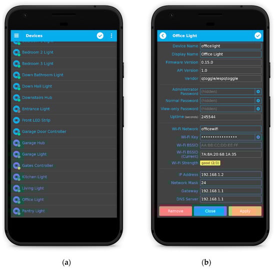 - Makhanya, S.P.; Dogo, E.M.; Nwulu, N.I.; Damisa, U. A Smart Switch Control System Using ESP8266 Wi-Fi Module Integrated with an Android Application. In Proceedings of the 2019 IEEE 7th International Conference on Smart Energy Grid Engineering (SEGE), Oshawa, ON, Canada, 12–14 August 2019; pp. 125–128. [Google Scholar]