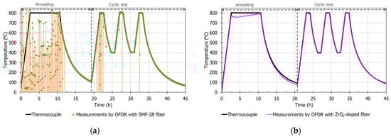 3.2. OFDR Temperature Measurements during Heat Treatment at 800 °C