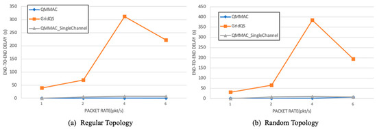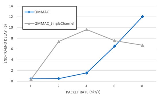 End-to-end delay for QMMAC and QMMAC-single channel.