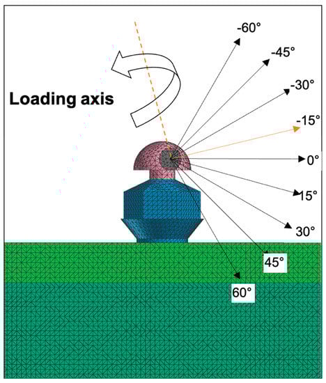 Miniscrews were assumed to be placed with various angulations on the alveolar bone surface. An archwire parallel to the alveolar bone and the occlusal plane passing through the hole of the angulated miniscrew forms corresponding angles with the long axis of the miniscrew. To make the same condition among the models, whole screw part was placed into the alveolar bone and the archwire was inserted with angles from −60° to +60° with an angle interval of 15°.