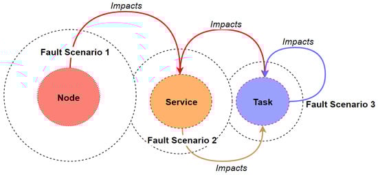 We classify the faults according to their occurrence into three scenarios: node, service, and task, as demonstrated in Figure 4, when the entire node fails due to a certain memory, CPU, or network error, all the running services and tasks hosted by the failed node are impacted, and the tolerance complexity increases. Likewise, when a service fails, all its associated tasks fail as well and are subject to re-execution. Moreover, if a single task fails, Hadoop intends to re-execute it on the same or another active node. With those three scenarios, we cover all the possible cloud-based fault and failure implications due to either fail-stop or fail-slow.