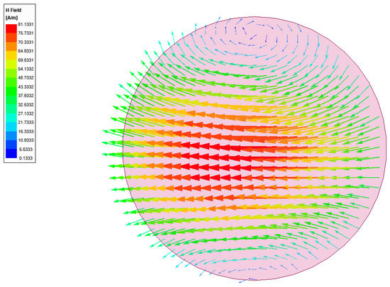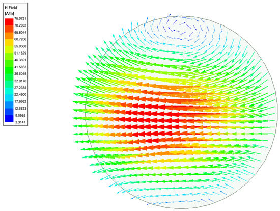 Magnetic field distribution of the resonant HEM11δ mode in the proposed single element CDRA obtained from an eigenmode solution.