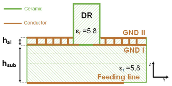 Schematic of the proposed stack with grounded and grooved superstrate for the CDRA.