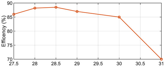 Figure 19 shows the variation of the measured efficiency of the proposed 4 × 4 CDRA array versus frequency at discrete points. A maximum efficiency of 88% has been achieved around 28.5 GHz and is at or above 85% between 27.5 and 30 GHz.