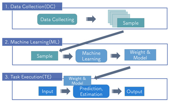 In the DC step, training data are collected and preprocessed so that the data can be efficiently processed in the next step. The training of the DNN requires large amounts of data to avoid overfitting. In the ML step, the training of the DNN is performed using data collected in the DC step to optimize the model’s parameter to the target task. The structure of the model and hyperparameters of the training process are determined for the target task. In the TE step, the target task is performed using the DNN model and trained weight parameters. The individual packages shown above were designed based on general DNN R&D, which allows them to be extended to a wide range of systems, as discussed in Section 6.3.