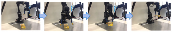 The application described in this subsection is based on the robot’s task experience collected in the DC step as training data, so it can be applied to various tasks. In fact, in another study by us [3,44], the above application was already implemented to learn a different robot task from that described above [45]. This was developed using our educational kit as a baseline for system design, demonstrating the effectiveness of the proposed system.
