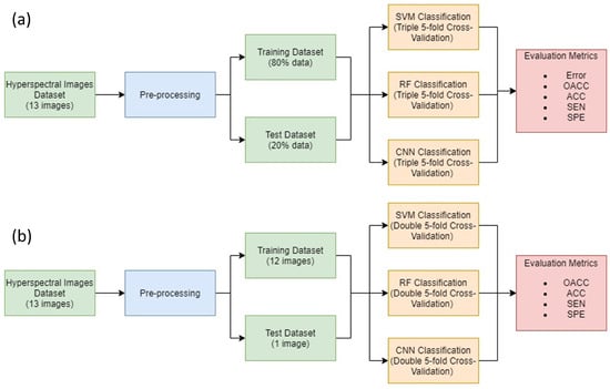 Diagram of the designed methodology for both experiments: (a) Experiment A (top), (b) Experiment B (bottom).