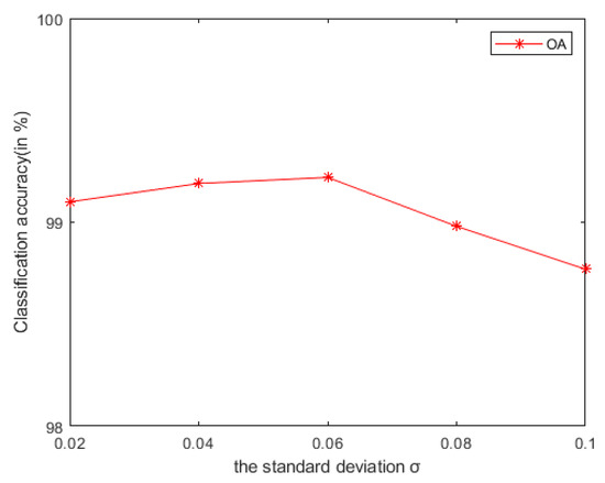 Figure 20. Under different additive Gaussian noise environments, the OA of LRS-HRFMSuperPCA algorithm.