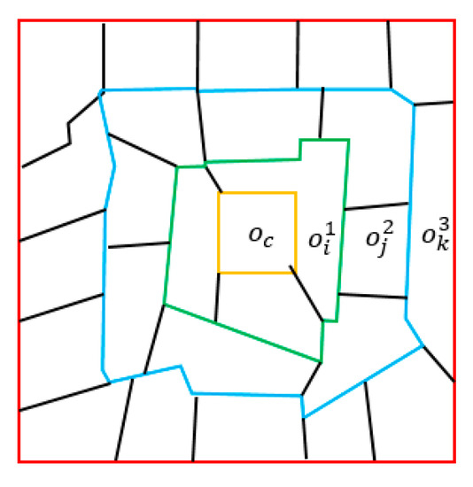 where is the aggregation weight. As the perimeter of the outer polygon becomes larger, the number of adjacency objects becomes larger as well. If there is a large number of geographic objects with same category in the far distance, the aggregation of them may cause greater impact on the center node, even more than the nearby category. This may lead to the problem of “reversal of the first law of geography” and cause the misclassification of the center node. Samples facing this problem can be divided into two kinds: