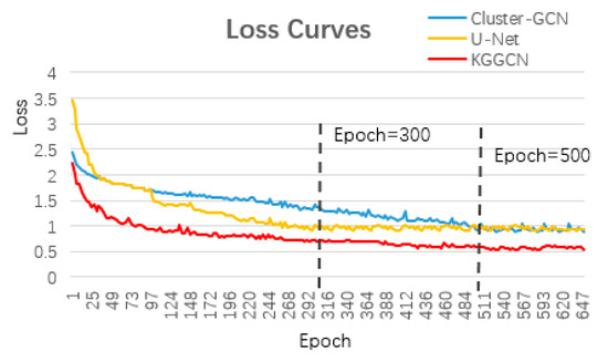 The KGGCN module requires two graph convolutional layers and a fully connected layer. The output dimension of the graph convolutional layer is 64, and the output dimension of the fully connected layer is 16. Batch size is set to 1, learning rate is set to 1e-30.001, and dropout is set to 0.4. The number of training rounds is 3000.