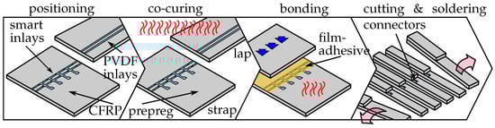 The smart inlay development including the design, the substrate adaptations as well as the fabrication and the testing of microsensors was conducted by C.v.d.H.; Function conformity aspects were mainly contributed by J.S.; The sensor integration process, the CFRP specimen fabrication and the evaluation of results were conducted in close collaboration between C.v.d.H. and J.S.; Conceptualization, C.v.d.H., J.S., M.J.S., A.D., C.H. and M.S.; methodology, C.v.d.H.; software, C.v.d.H. and J.S.; validation, C.v.d.H. and J.S.; formal analysis, C.v.d.H.; investigation, C.v.d.H. and J.S.; resources, M.J.S., A.D., C.H. and M.S.; data curation, C.v.d.H. and J.S.; writing—original draft preparation, C.v.d.H. and J.S.; writing—review and editing, C.v.d.H. and J.S.; visualization, C.v.d.H. and J.S.; supervision, A.D., C.H. and M.S.; project administration, A.D., C.H. and M.S.; funding acquisition, A.D., C.H. and M.S. All authors have read and agreed to the published version of the manuscript.