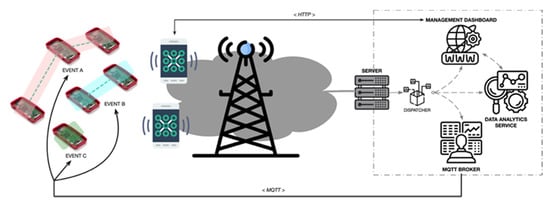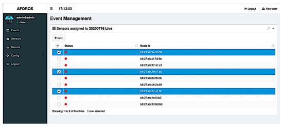 Thus, prior to the event, each sensor to be used receives an updated file via MQTT containing the information related to the assigned events. For each event, the sensor will receive a code, an alias, and start/end dates.