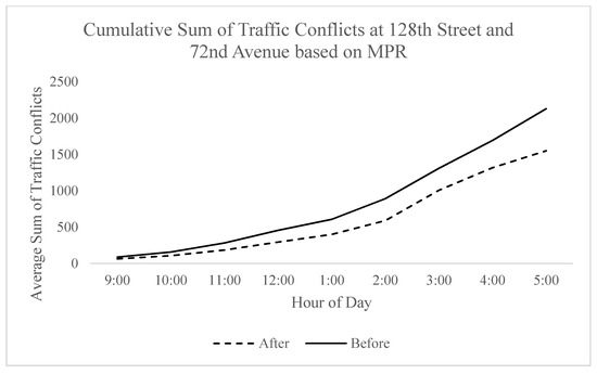 This indicates that this system is functional in the transitional state when not all vehicles on the road are connected and thus is applicable in the near future. However, certain outliers were observed, as seen in Figure 8, which resulted in a higher MPR corresponding to increased conflicts at lower levels during certain times of the day. This indicates that the system may work in most scenarios but underperforms under certain conditions. However, a compensating effect is observed when considering the entire dataset, which offsets the negative effects.