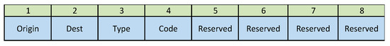 Nine different types of messages were defined, being identified through type field (byte 2) and code field (byte 3) of each frame (Table 1).