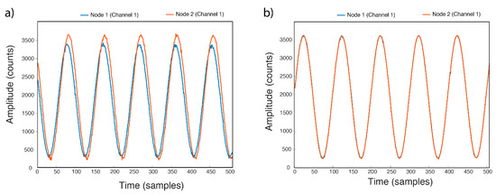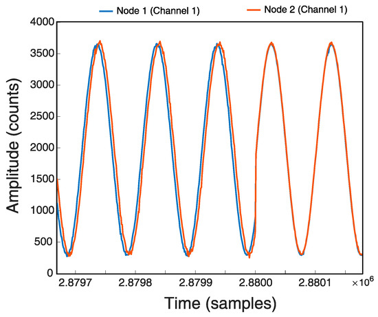 Therefore, one of the great challenges in distributed acquisition systems is the perfect synchronization of the different Nodes, since without this feature the acquired signal tends to move and produces errors in the calculations of different parameters such as propagation speed, positioning of the origin of the movement, etc. One of the disadvantages of the existing microcontroller boards in the market is that they use a poor-quality quartz clock to lower their prices. These clocks are not very accurate and produce deviations that in prolonged recordings cause the time differences to be even greater and can be clearly perceived. For this reason, a great deal of effort has been devoted to implementing algorithms capable of synchronizing the Nodes. A starting point for the study of existing wireless sensor network (WSN) algorithms and protocols is presented by Sundararaman et al. [38], where different techniques are summarized and compared.