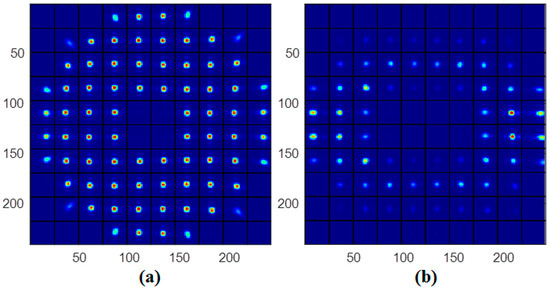 (a) The standard sub-aperture image of WFS. (b) The sub-aperture image of WFS with non-uniform near-field and irregular spots.