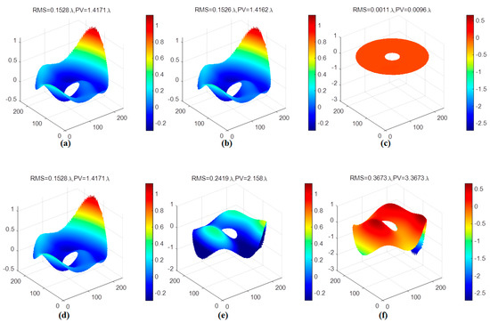 (a) The RMS value of the residual wavefront. (b) The PV value of the residual wavefront.