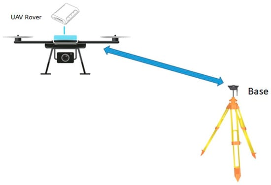Using single frequency receivers, it is difficult to completely eliminate the effects due to the atmosphere, while with the advent of Multi-frequency receivers, this problem has been greatly reduced, even while using longer baselines (for example greater than 20 km). The possible implementation of an RTK system on a UAV is shown in Figure 2, where in this case, the rover is mounted on board a UAV and the GNSS Base is usually placed in close proximity to the flight area.