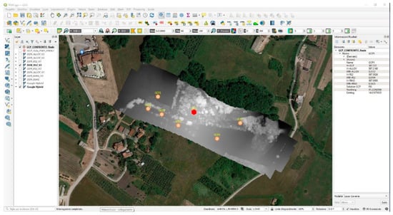In the central tab of the picture, there is a visual representation of the products with a Google basemap. In the side tabs of the picture, on the other hand, we found the list of layers on the left and information on the selected point on the right, as depicted in Figure 14. Naturally, all the layers were georeferenced in the same reference system.