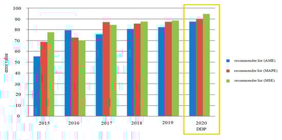 | Comparison of the Proposed DPP Predication Model During 5-Years Top Recommendation List of Average Error Results | DDP | |||||