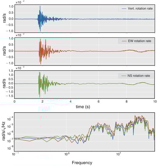 Amplitudes and spectra of rotation rate recorded by the RotSensor3C.