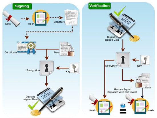 Moreover, a digital certificate is signed and provided by the Certification Authority (CA) to guarantee trust in the signed data.