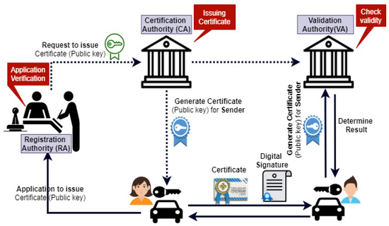 We use a PKI-based digital signature scheme to secure the communication between vehicles. An overview of PKI based digital signature is presented below;