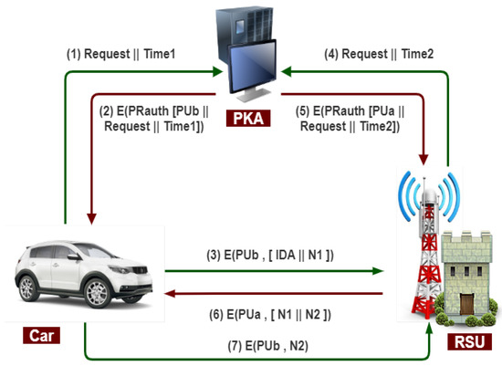 The following steps are required whenever a vehicle wants to communicate with another vehicle, as shown in Figure 7.