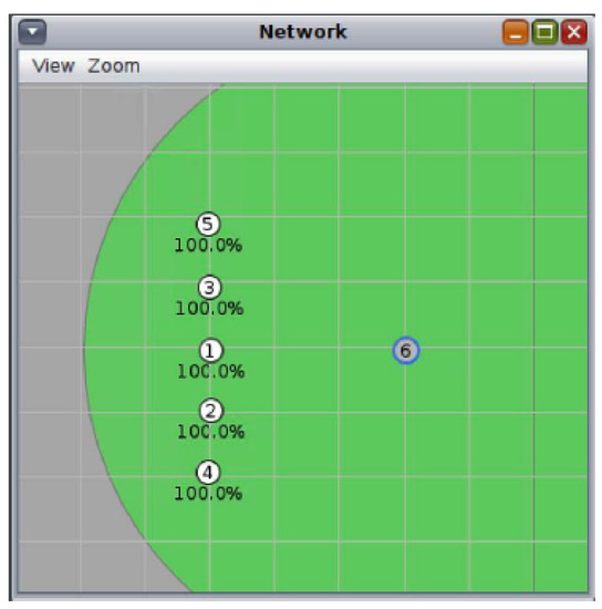As can be seen in Figure 3, the nodes that will be part of the set of devices already synchronized are located in line, always within the coverage area of the new node that has been added—in this case, node 6. This deployment has been carried out because, although the physical network topology does not matter, it is necessary that all the nodes that are already connected to the network are within the coverage area of the new node in order to send signaling traffic from both TSCH and RPL.