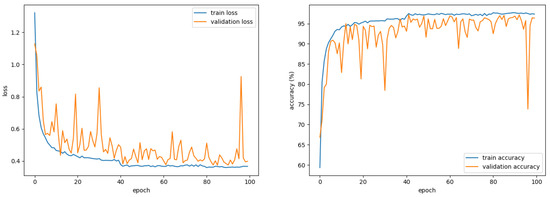 CNNs have the advantage of learning filters and extracting features of input data independently [33]. Therefore, CNNs do not require additional feature extraction and can use raw data without loss of information. Furthermore, owing to their robustness to distortion and changes in images, CNNs have been widely used in image classification contests and show excellent performance [34,35,36,37]. In a CNN, the CLs can extract the features via a convolution operation between the input data and the filter, and simple features such as lines are extracted from the front layer, and complex features such as texture are extracted from the back layer. The FCL uses the last output feature map of the CLs as the input and infers the final class. The pooling layer reduces the size of the data, thereby reducing computational complexity and preventing overfitting. For the pooling layer, max pooling and average pooling are commonly used. The batch normalization layer prevents internal covariate shift, improves learning speed, and solves gradient vanishing problems [38]. When it comes to the deep neural network architecture design, there exist hyper-parameter selection algorithms that have been shown to perform on par with human experts or surpassed them [39,40]. Suganuma et al. [39] attempts to automatically construct CNN architectures for an image classification task based on Cartesian genetic programming. Lorenzo et al. [40] proposed a particle swarm optimization algorithm for hyper-parameter optimization in deep neural networks. These network optimization methods show competitive results compared to state-of-the-art models. However, since most of these methods are focused on image classification, we select adequate network architecture through experiments with various network configurations. However, we think further research on network optimization is needed in the future.