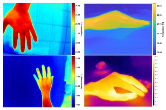 A specific feature of the IRT technique is that the object of interest is warmer or cooler than the background in certain environments [41,42]. In medical thermography, the limb was left to cool with the room temperature in such a way that the temperature was homogenized [43,44]. However, due to the physiological processes of the human body, the limb usually has a higher temperature than the surrounding environment. In addition, medical thermography protocols, in general, suggest maintaining a controlled environment without continuous air flows and heat sources at the scene [15,43].