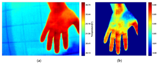 At this point, IR sub-data provides a RoI including a homogenous background instead of processing a raw IR image, as illustrated in Figure 15. The reconstructed images from the radiometric data are an interpretation of a color distribution related to the temperature intensity measured by the sensors.