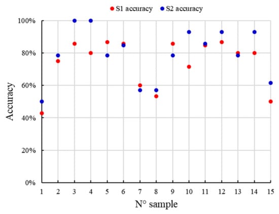 Geometric verification accuracy for each S1 and S2 image set of the foot.
