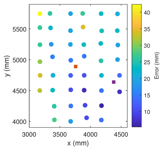 - The absolute positioning error obtained using the proposed calibration is below 35 mm, so the accuracy achieved is higher than what is achievable for most other existing IPS alternatives.