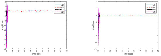 where is the state vector of the ith system, is the continuous function, is matrix function, are the main parameters which are piecewise constant of the ith slave system, and , is the control function of ith system. Therefore, according to Equations (1) and (2), synchronization of the chaotic system with the control function is as follows: