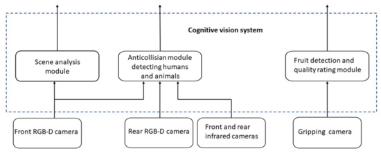 The robot will run in greenhouses. Its vision system should ensure collision-free navigation in the environment. The cognitive vision system in the robot realising the said task is planned to consist of three independent modules: