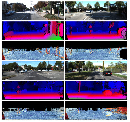 - Menze, M.; Geiger, A. Object scene flow for autonomous vehicles. In Proceedings of the Conference on Computer Vision and Pattern Recognition, Boston, MA, USA, 7–12 June 2015; pp. 3061–3070. [Google Scholar]