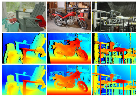 - Scharstein, D.; Hirschmüller, H.; Kitajima, Y.; Krathwohl, G.; Nešić, N.; Wang, X.; Westling, P. High-resolution stereo datasets with subpixel-accurate ground truth. In Proceedings of the German Conference on Pattern Recognition, Münster, Germany, 2–5 September 2014; pp. 31–42. [Google Scholar]