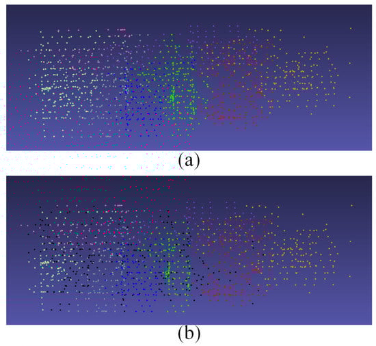 We used a single computer configuration to verify the accuracy of the camera clustering results. Figure 4 shows the camera graph division and expansion of the area of Tiangong University. The dataset contains 1510 UAV aerial images with a resolution of 2736 × 1824, where each point represents a camera. As shown in Figure 4, our method can enable effective camera division and expansion on medium-scale scenes.