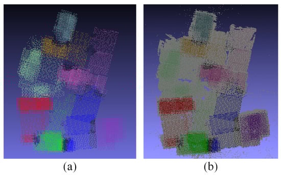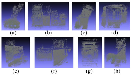 The application of deep learning in geometric matching pipelines mostly focuses on local feature detection and descriptor learning [,]. Mismatch removal work based on deep learning [,] has also been well applied. In previous work [], the Point-Net class architecture and context normalization were used to classify the inferred correspondence. However, this study could not take advantage of the relative motion pose shared by neighboring pixels []. Zhang et al. [] used neural networks to infer the probability of each corresponding point as an interior point and then restored the camera pose. Tabb et al. [] used rigid constraints to represent the camera network and multi-camera calibration problem and expressed it as a system of equations to obtain approximate solutions. Liu et al. [] developed a new type of deep neural network (LPD-Net), which can extract distinguishable global descriptors from the original 3D point cloud. Yao et al. [] proposed a multi-view-based depth map understanding framework (MVSNet) for the 3D reconstruction of outdoor scenes. Their method only calculates one depth map at a time instead of calculating the entire 3D scene. Gu et al. [] further improved MVSNet, which solved the cubic increase in computational complexity as the image resolution increased. Most 3D reconstruction algorithms are only applicable to static scenes. Miksik et al. [] proposed an end-to-end system for the real-time reconstruction of outdoor dynamic environments. The system operates in an incremental manner and can process scenes of objects in real time. For the application of outdoor dynamic scenes, Hu et al. [] further proposed an efficient and lightweight network to directly determine the semantics of each point in a large-scale point cloud. In short, the current deep learning-based methods can process low-resolution input image sets. They are mostly suitable for indoor scenes or small-scale outdoor scene reconstruction work. Therefore, the problem of sparse point cloud reconstruction for large-scale scenes requires the use of geometric information-based motion recovery structure technology.