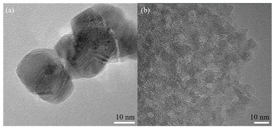 TEM images of the samples: (a) the nano-SnO2 and (b) the commercial ZSM-5.