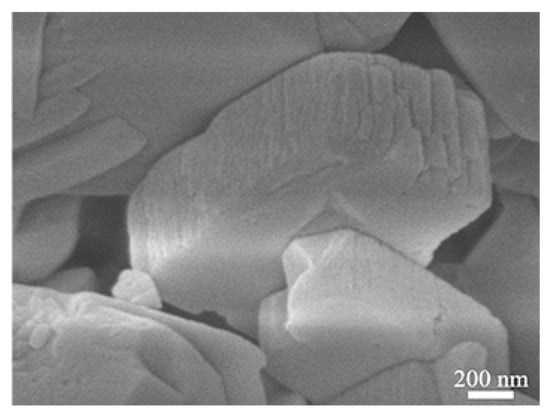 Figure 4 shows the TEM images of the nano-SnO2 powders and the commercial ZSM-5 zeolite. It can be seen that the nano-SnO2 particles show an irregular spherical shape and the size of the nano-SnO2 particle was about 40 nm (Figure 4a). Correspondingly, the ZSM-5 zeolite particles were prismatic, and the length of the prisms was about 900 nm (Figure 5). It was revealed that there are plenty of ordered tiny pores, which their size is about 2 nm, in the ZSM-5 zeolite particle as observed in Figure 4b.