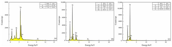 EDS spectrum of sensors surface: (a) S(C), (b) S(C/Z3), and (c) S(C/Z5).