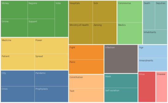 - Abd-Alrazaq, A.; Alhuwail, D.; Househ, M.; Hamdi, M.; Shah, Z. Top Concerns of Tweeters during the COVID-19 Pandemic: Infoveillance Study. J. Med. Internet Res. 2020, 22, e19016. [Google Scholar] [CrossRef]