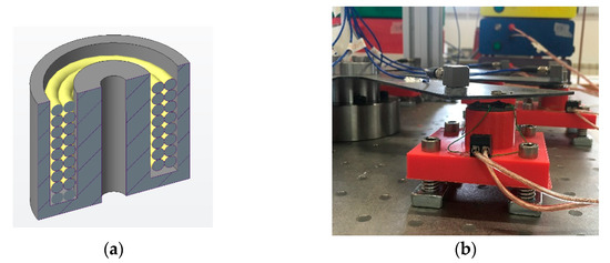Excitation devices: (a) cross section of the magnet; (b) spring-mounted support.
