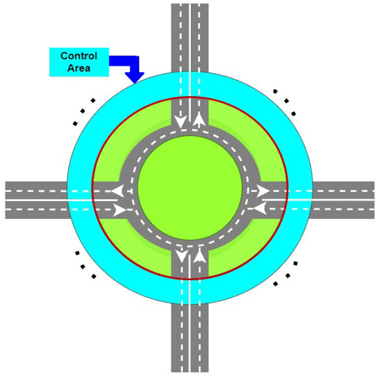 - The consideration of a general case for a roundabout with n entries/exits; compared to the solutions in [29,30], we solve a general case of a roundabout intersection, and the solution does not depend on the number of entries/exits or number of vehicles;