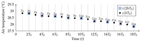 - The greenhouse indoor temperature sensor data collected with a sampling period min are arranged in a time series. Furthermore, from this original time series, six additional time series are derived downsampling the first time series with longer sampling periods (Section 4.2).